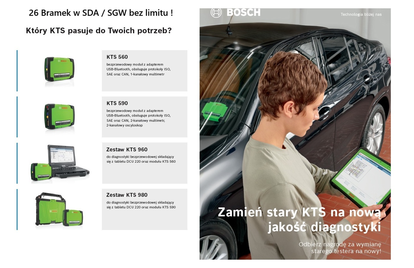 Przyszłościowe analizatory spalin i testery Bosch .Nowe limity emisji obowiązujące przy urzędowych badaniach samochodów z silnikiem wysokoprężnym w Wielkiej Brytanii pojawiły się 20 maja 2018 r.Urządzenia i oprogramowanie do kontroli emisji firmy Bosch są łatwe do aktualizacji. Wraz z naszą silną, ogólnokrajową siecią serwisantów firma Bosch będzie wspierać warsztaty w przygotowaniu do wymogów prawnych w zakresie badania spalin w SKP.