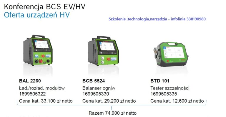 – Diagnostyka i obsługa pojazdów elektrycznych. Szkolenie 2-dniowe. Cena 1600 PLN netto.