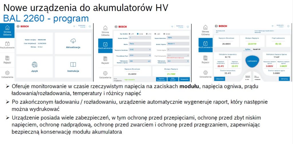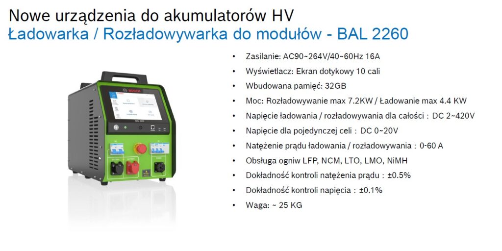 – Naprawa baterii w pojazdach hybrydowych oraz elektrycznych przy użyciu BAL 2260,