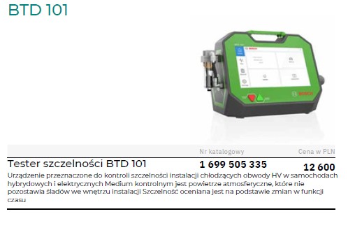 | BTD 101 1 699 505 335 | Tester szczelności akumulatora |